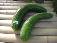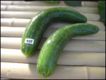 (1) Large fruit has flesh which is perfumed, easily digested, and has a superior taste. Skin is hard and bitter – so peel off. Prolific, no disease. The best cucumber that I have grown in a long time. Still grown by Tante Alice Gosselin, 90 years old, in Dorchester county, Quebec. An heirloom variety.