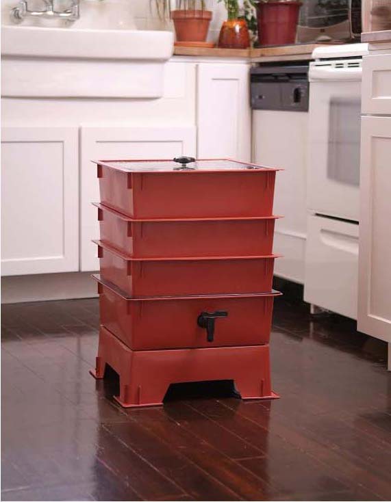 C’est pas donné: souvent 100 et plu$. Ça fait cher le compost mais en faisant une recherche, 5 livres de compost de vers de terre vaut environ 7.00$. Comme un vers à compost mange l’équivalent de son poids en une journée et que ça en prend moins qu’un compost ordinaire, c’est le temps qui nous fera entrer dans notre argent. Qui plus est, on peut récolter le jus de compost avec le robinet situé à l’avant; un autre super fertilisant concentré. Et puis, ça se multiplie tout seul. 1 livre de vers peut se vendre entre 25$ et 40$ (sans les taxes)