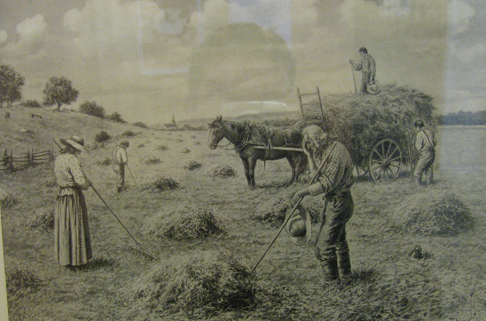 Par contre, l’heure pouvait différer en fonction des activités dans l’année. C’est un moment d’arrêt où le temps suspend son vol. Mais pour les gens occupés aux champs, c’était la cloche de l’église qui les ramenaient à l’ordre. C’est peut-être pour cela qu’on voit le clocher au loin de l’image. Vous pouvez cliquer sur l’Image pour l’agrandir. Pour en savoir plus.