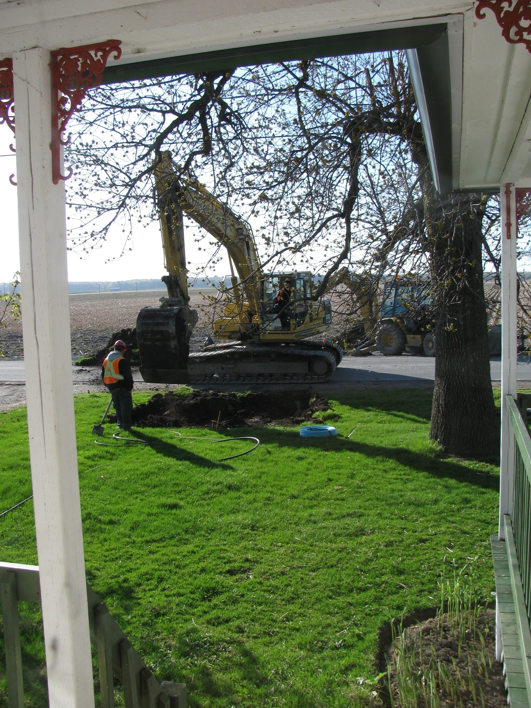 Et ce fût le cas ce matin en voyant justement ces pépines creuser notre terrain, sans avertissement, à 7:00 pour joindre notre entrée d’eau à la nouvelle canalisation installée en novembre dernier. Après 7 ans de travaux incessants dans notre petite municipalité (changement des tuyaux d’égoûts, asphaltage des rues, enfouissement des fils électriques, règlements pour le changement de toutes les fosses septiques non conformes…) nous aurions besoin d’un répit.