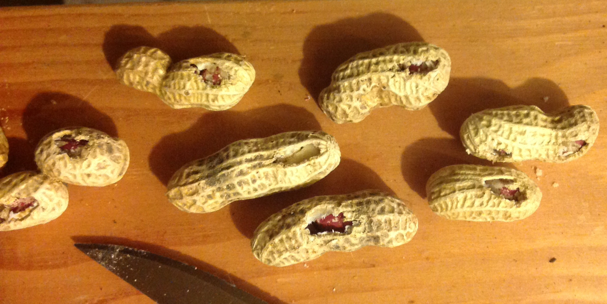 Texas White and Red (2014)En effet, même si la fleur est hermaphrodite, c’est-à-dire qu’elle continent à la fois les organes mâles et femelles, assurez-vous qu’il n’y ait aucune autre variété à moins de 1,5 km de distance pour conserver le caractère unique de la variété. Lorsque les fleurs apparaîtront, la magie de la nature fait en sorte qu’une fois pollinisées, les gynophores s’enfonceront dans la terre pour produire leurs gousses. Fascinant! Ça émerveille les enfants et nous aussi à chaque fois. En automne, tirez sur le plant jauni et ratatiné puis… TADAM! une grappe de « peanuts ». La prochaine étape consiste à nettoyer votre butin.