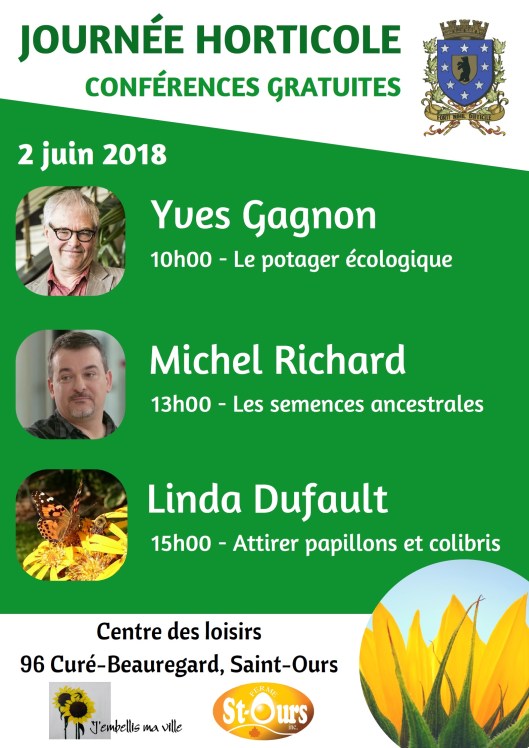 En effet, samedi le 02 juin prochain, entre 10h00 et 16:30 venez assister à des conférences gratuites autour de leur journée horticole. Pour cette nouveauté, les responsables m’ont gentiment invité à tenir une présentation à 13:00 sur les semences ancestrales. Pour celle-ci, j’apporterai, entre autre, des spécimens uniques à faire tirer ou à offrir aux gens qui participeront (j’hésite encore quant à la formule à adopter). N’hésitez pas non plus à apporter vos propres plantes alimentaires de famille car mes plus belles trouvailles l’ont été lors d’échanges. J’aime toujours apprendre leurs histoires et leur chemin parcouru. Ce sera un bon moment pour partager. Au plaisir de vous rencontrer lors de cette journée.