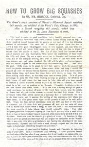 En effet, dans l’un de leurs catalogues de 1883-1884, le semencier américain « Burpees » fait référence aux dimensions énormes d’une courge d’un producteur canadien de Goderich en l’Ontario, fracassant records après records. Petit fabricant de voitures canadiennes et machiniste / agriculteur, il se distingue avec des échantillons inédits comme on le voit ici-bas. En plus de cultiver cette plante pour nourrir sa famille, ses connaissances acquises de génération en génération, il parvient à perfectionner son art et sélectionne un des plus gros cultivars au monde.