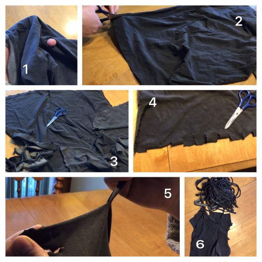 Attaches pour vos plantes. Déchiré en lanières, un tee-shirt pourra vous fournir une quarantaine d’attaches. Qu’elles soient pour vos tomates, arbustes, grimpantes, grandes fleurs (ex: tournesols), le coton flexible et souple s’adaptera à l’expansion des tiges au cours de l’été. Pas assez long? J’en attache deux ensemble. Un truc de moins à acheter en jardinerie. Ici-bas les étapes proposées.