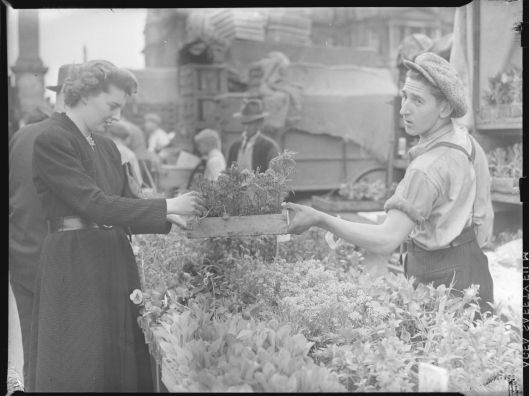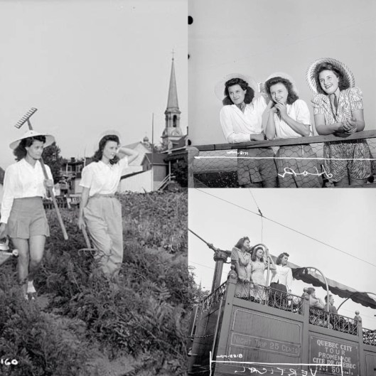 Aussi appelé « potager pour la défense » ou « jardin de guerre », on les retrouvaient autour des résidences privées ou dans des parcs publics pendant la Première et la Seconde Guerre mondiale. Au Québec, on retrouve peu d’infos sur ces potagers peut-être mis-part cette image (en haut à gauche) prise le 24 août 1942 à Québec où les sœurs Perry aident à l’entretien du potager sur la propriété de l’usine de la Dominion Arsenals Ltd.. Destinés surtout à atténuer la pression de la guerre sur l’approvisionnement alimentaire public, on leur attribuait aussi la vertu de stimuler le patriotisme chez les civils; ceux-ci se sentant utile de contribuer à l’effort de guerre par les produits récoltés. Pour en savoir plus sur l’histoire du premier potager de la victoire, consulter le livre « American Grown: The Story of the White House Kitchen Garden and Gardens Across America » (version anglaise seulement) en vente ou en location dans certaines bibliothèques.