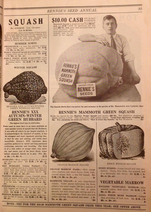 En effet, dans l’un de leurs catalogues de 1883-1884, le semencier américain « Burpees » fait référence aux dimensions énormes d’une courge d’un producteur canadien de Goderich en l’Ontario, fracassant records après records. Petit fabricant de voitures canadiennes et machiniste / agriculteur, il se distingue avec des échantillons inédits comme on le voit ici-bas. En plus de cultiver cette plante pour nourrir sa famille, ses connaissances acquises de génération en génération, il parvient à perfectionner son art et sélectionne un des plus gros cultivars au monde.
