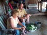 Norbert Robichaud en train de préparer des ognons sous la supervision du chien Benny 2017 (photo: Norbert Robichaud)