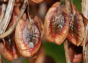 Troisième étape: Récolter les graines lorsque celles-ci commenceront à brunir dans leurs siliques. Prenez les siliques et déposez-les dans un sac de papier brun (un sac d’épicerie fera l’affaires). Leur maturation se complètera dans les sacs et vous pourrez les égrener plus tard en hiver lorsque vous aurez du temps.