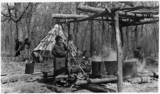 Femme ojibwée récoltant un érable à sucre (image: Roland Reed, 1908) Bibliothèque du congrès des États-Unis (cph.3c05740)