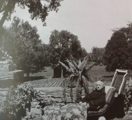 Jardins des Franciscains (Frère Joachim Monfette dans le jardin de l’infirmerie de Sainte-Geneviève-de-Pierrefonds, hôpital et maison de santé des franciscains du couvent Saint-Roch (Photo: Archives des franciscains, année inconnue)